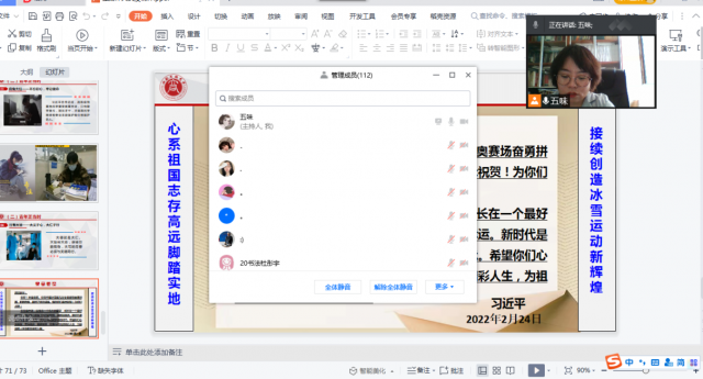 学院副院长闫雪峰为所包联的20级雕塑班、20级书法班和19级视觉二班的学生,以腾讯会议的方式进行线上讲授。她指出,希望yl6809永利集团全体在校学生深刻理解疫情防控工作的重要性和严峻性,充分理解并配合学校的疫情防控工作。在校期间认真学习过硬本领,不信谣、不传谣,积极参与到同大疫情防控工作中。