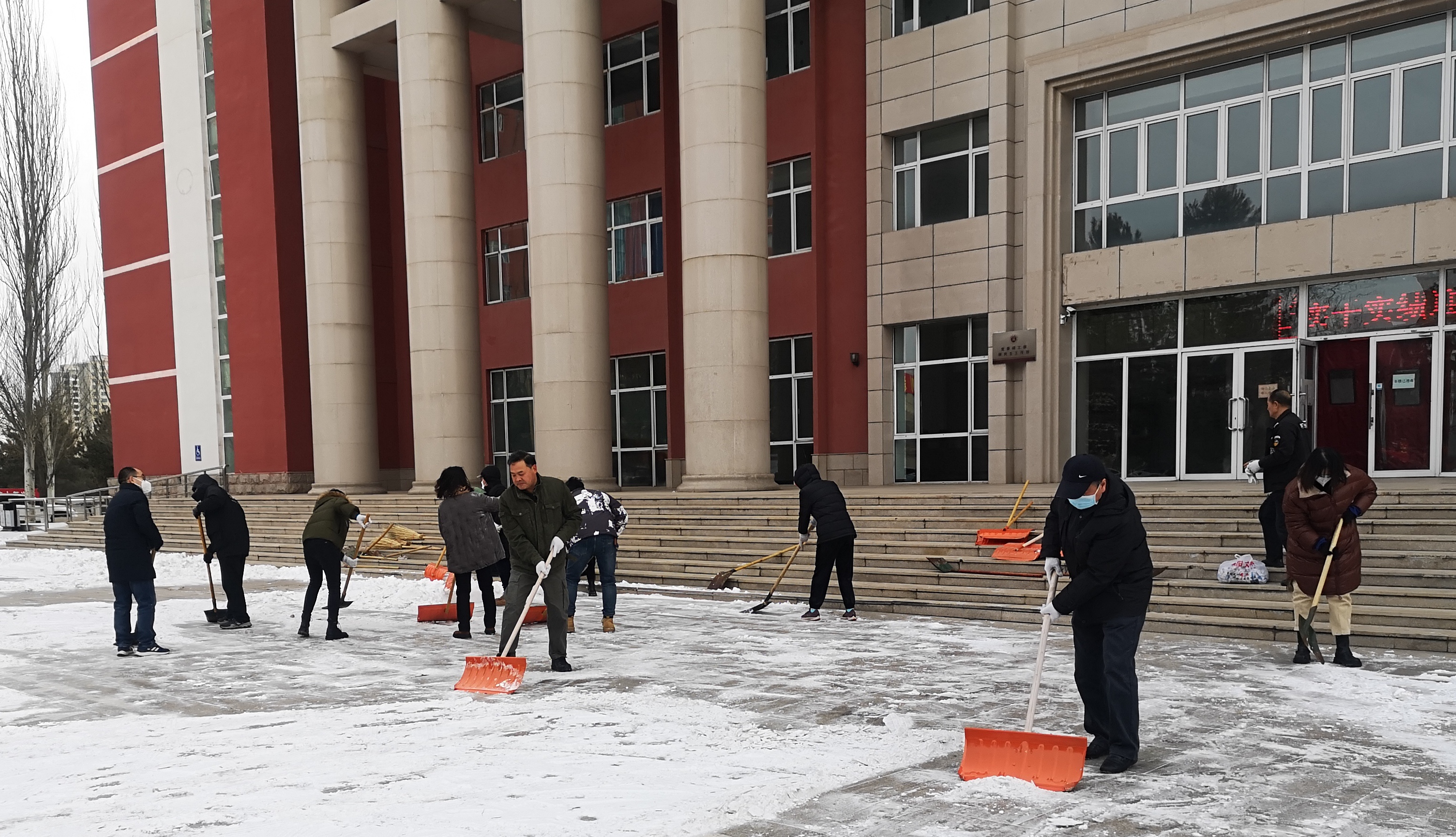 yl6809永利集团组织坐班人员铲除善美楼前积雪
