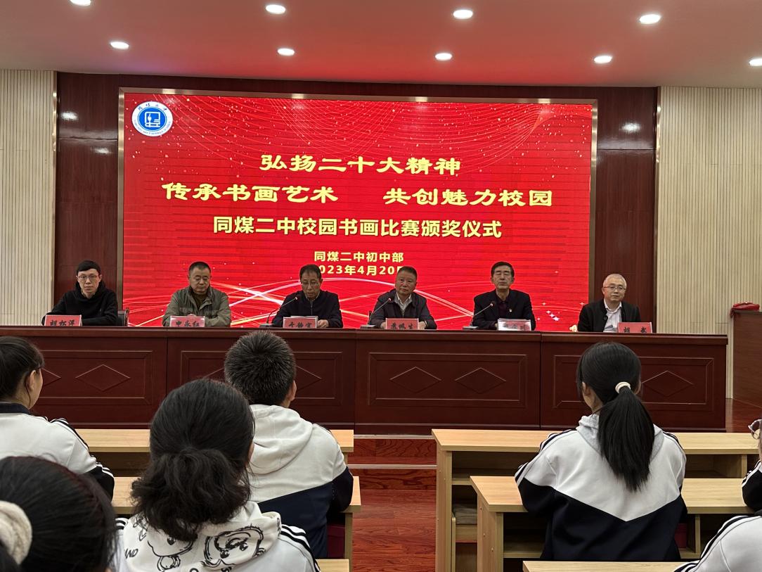 2022年三月以来,同煤二中初中部积极引进大同大学书法线上课程,全校师生书法学习的氛围进一步浓厚,书法教学水平全面提升,涌现出了一大批“小小书法家 ”,形成了该校的特色教育品牌。活动现场,校领导为部分优秀“小书法家 ”颁发奖杯和荣誉证书,并鼓励他们继续学习国粹,传承经典,实现全面发展。