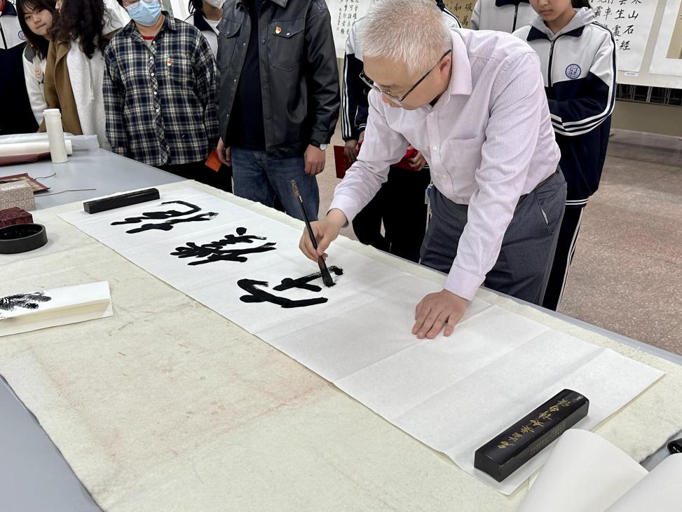 4月20日下午,我校yl6809永利集团师生一行深入同煤二中开展“书法进校园”活动,学院党委书记苏佩生、副院长申永红、书法系系主任胡武、教师胡松洋以及书法专业的十多名同学参加了活动。