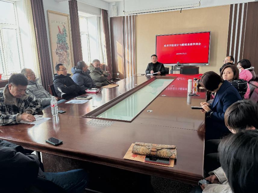 2024年3月1日上午9时,设计与雕塑系在善美楼多功能室举行教学例会,会议由系主任李宏刚主持。参加本次会议的人员有院长、教研室主任与全系教师。
