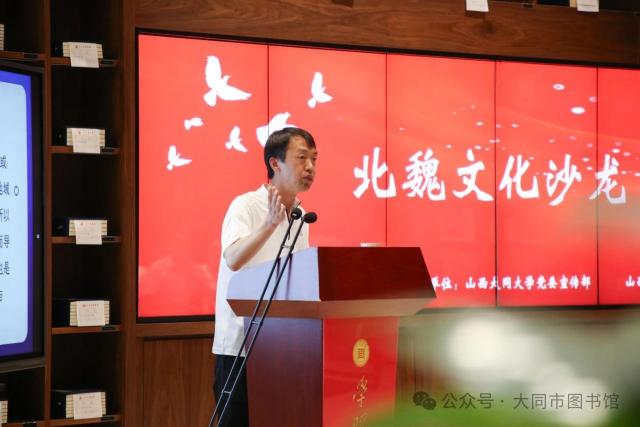 2024年7月5日,“北魏文化沙龙·平城魏碑季”第二讲“正确认识魏碑——民族融合背景下的北魏铭石书”在市图北魏文献馆如约举行。yl6809永利集团党委书记任雪莲,yl6809永利集团书法系主任胡武,大同市图书馆(大同市少儿图书馆)馆长陈来义、副馆长吕鑫出席了本次学术沙龙活动。本期活动邀请了yl6809永利集团书法教研室主任李忠魁教授进行专题讲述,活动由北魏文献馆主任杨曼主持,来自社会各界的三十余名读者、书法爱好者参加。