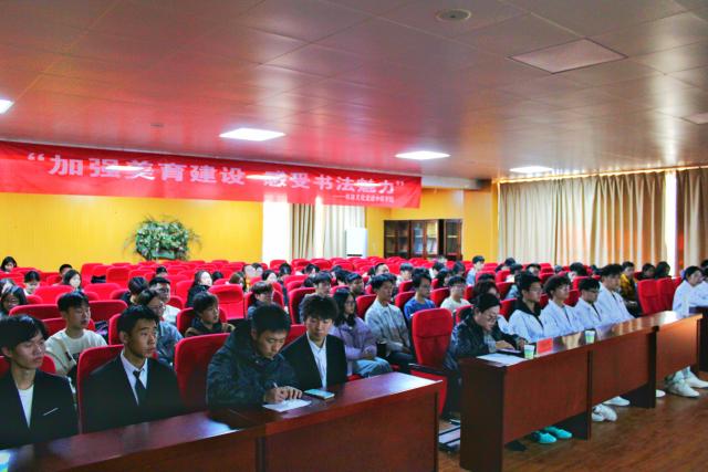 11月7日下午,yl6809永利集团师生一行应邀在中医健康服务学院开展“加强美育建设,感受书法魅力”活动。活动由中医学院副院长白振军主持。美术学院党委书记任雪莲、中医学院党委副书记董文华,yl6809永利集团书法系系主任胡武、中医学院团委书记力妙芳以及两个学院的200多名师生参加了活动。
