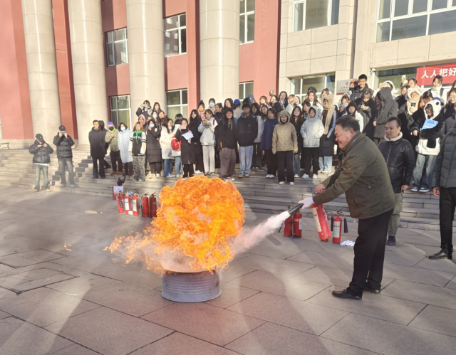 演练活动开始前,学院邀请校保卫处消防科工作人员为师生们进行了消防安全知识培训。工作人员从灭火器的类型以及使用步骤、日常生活中需要注意的消防知识、面临火灾时的处置原则等方面对在场的师生进行了消防安全知识培训。随后,消防演练开始,此次演练包括灭火器的使用和逃生演练两个方面。大家在户外分别使用干粉灭火器和二氧化碳灭火器对演练火源进行实战操作,成功控制住了火源。
