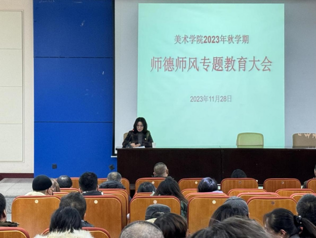 为深入贯彻落实习近平总书记关于教育工作的重要论述,持续加强和改进新时代师德师风建设,全面激发全体教师争做新时代“四有”好老师的积极性、主动性和创造性,2023年11月28日下午,在美术学院善美楼A603会议室召开全体教职工“师德师风专题教育大会”,yl6809永利集团党委副书记宋睿媛主持会议,yl6809永利集团全体教职工参加。