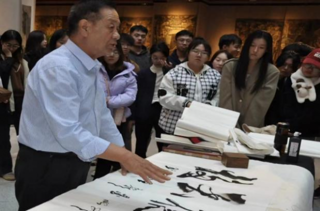 讲座前学校为赵炳南老师颁发客座教授聘书。讲座结束后,赵炳南先生与同学们一起移步到善美楼展厅开展现场创作示范。