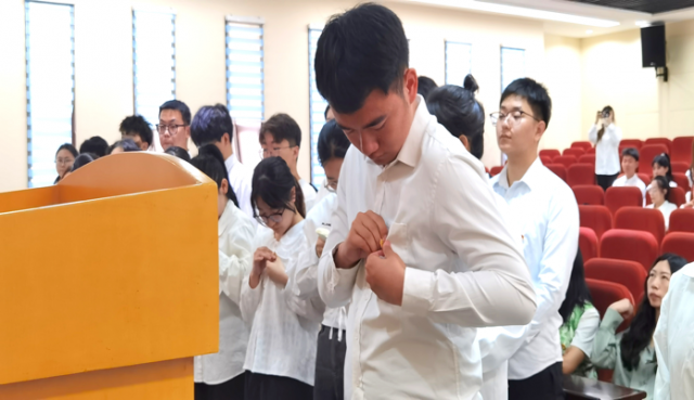 2024年5月20日上午十点,yl6809永利集团党委在善美楼A603会议室举行2024年预备党员入党宣誓仪式。参加这次宣誓仪式的有yl6809永利集团党委书记任雪莲同志、院党委副书记宋睿媛同志、院团委书记刘欣同志、组织员闫海生同志,各支部书记以及学生干部等。宣誓仪式由我院青年志愿者协会主席申济铭同志主持。
