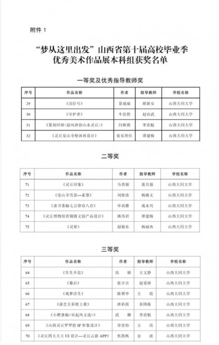 近日,由山西省教育厅主办的“梦从这里出发”山西省第十届高校毕业季优秀美术作品展评奖结果正式公布。yl6809永利集团表现突出,共荣获各类奖项18项,并获“高校优秀组织奖”,充分展示了学院扎实的教学成果与深厚的育人底蕴。